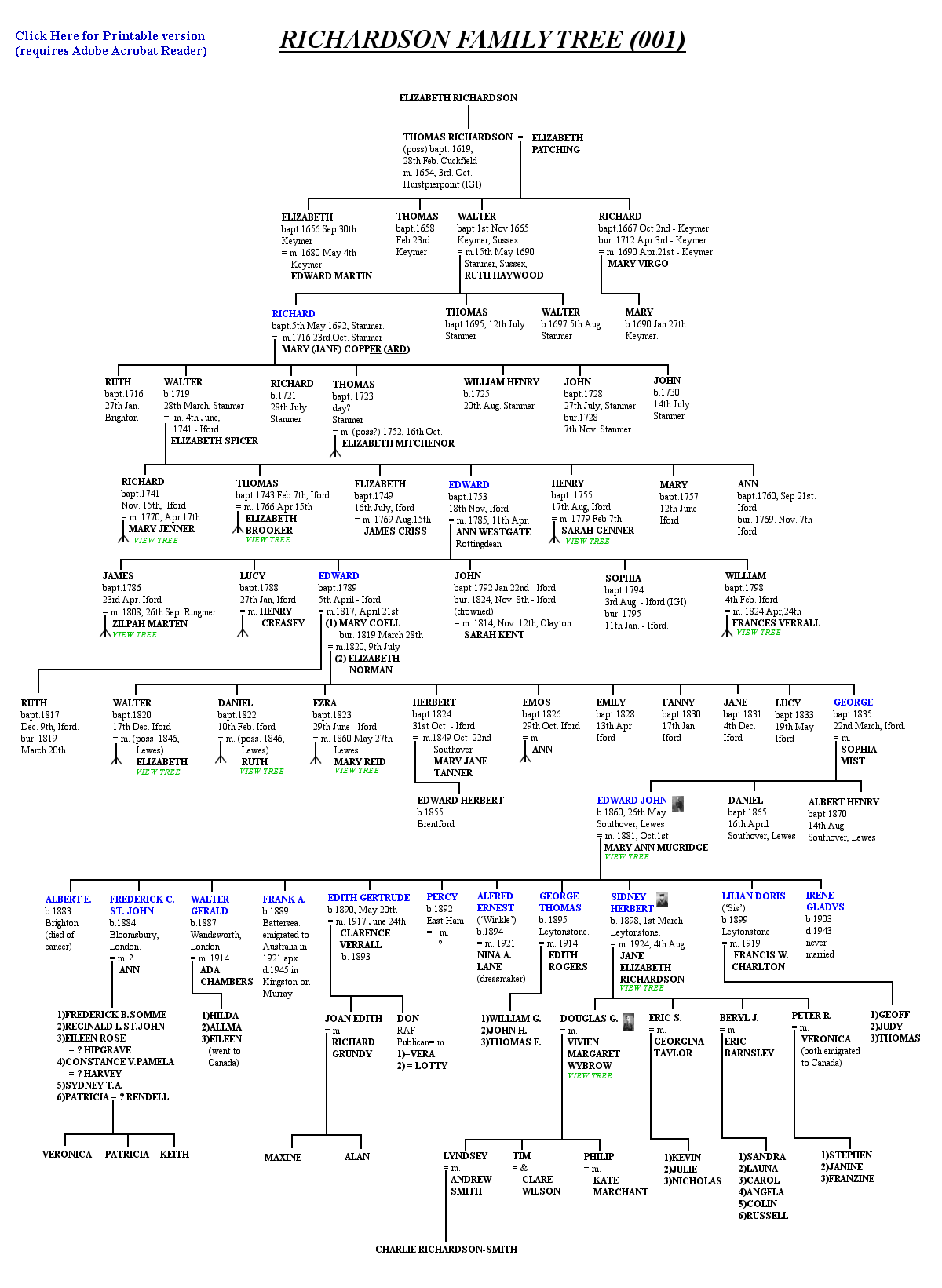 see photo Go To Mugridge Tree see photo see photo see notes see notes See notes Print Acrobat version Go to Richardson002 family tree Go to Wybrow family tree